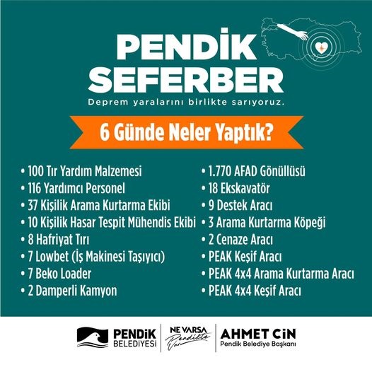 Depremin ardından 10 il için seferber olan Pendik Belediye Başkanlığı tüm tesislerde vatandaşlar tarafından gönderilen yardım malzemelerini gece gündüz demeden kolilere ayrıştırıp deprem bölgesine ulaştırdı.