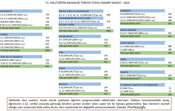 Taslağı hazırlayan zihniyetin ders saatlerine nasıl yansıdığına da bakalım: